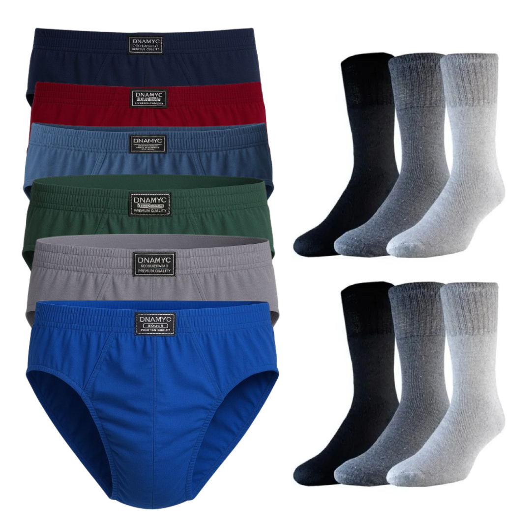 Combo X6 Slip Calzoncillos Hombre + 6 Pares De Medias Largas